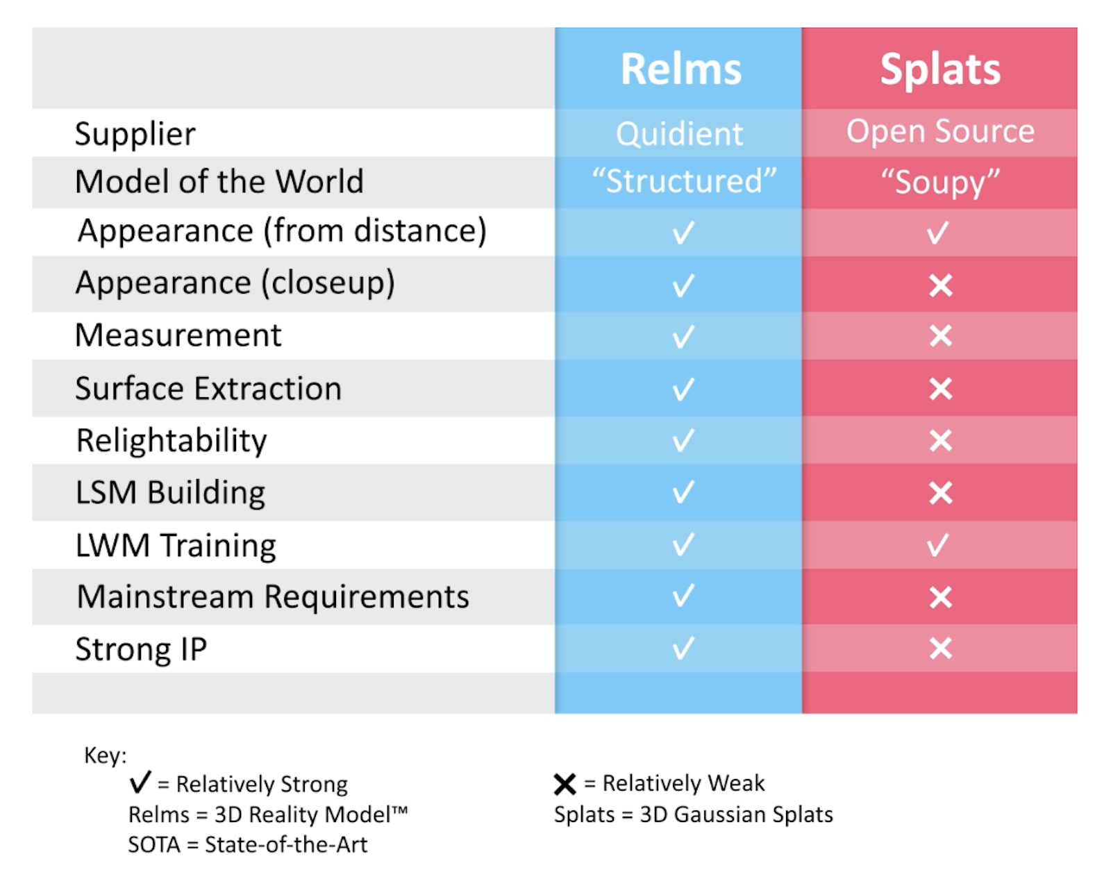 This chart is a general comparison of the main differences between Relms and Splats.